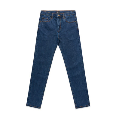 2 side pockets, patch pockets at back, anti-brass metal YKK zip fly, preshrunk to minimise shrinkage Printing Techniques: Suited for screen printing, heat pressing and embroidery Click here for more info Fabric Weight: Composition: Mid weight, 12.2 oz, 98.5% cotton, 1.5% elastane Product Weight: Midweight Fit: Slim Gender: Men. Colours: BACK, BLACK, BLACK - BACK, FRONT, MAIN, MID BLUE, MID BLUE - BACK, RAW INDIGO, RAW INDIGO - BACK, SIDE, TURN