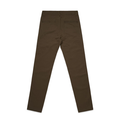 Explore the AS Colour Standard Pants, tailored for a classic clean aesthetic. Featuring a slim fit through the leg, they offer a refined silhouette. Two side hand pockets, jet pockets at the back, belt loops, a button fly closure, and YKK zip fly ensure our Standard Pants combine style with comfort. Printing Techniques: Suited for screen printing and embroidery Click here for more info Fabric Weight: 280 GSM Composition: Mid weight, 280 GSM, 98% cotton 2% elastane Product Weight: Midweight Fit: Slim Gender: Men. Colours: BACK, BLACK, BLACK - BACK, CHARCOAL, CHARCOAL - BACK, CYPRESS, CYPRESS - BACK, FRONT, KHAKI, KHAKI - BACK, MAIN, NAVY, NAVY - BACK, OLIVE, OLIVE - BACK, SIDE, TURN
